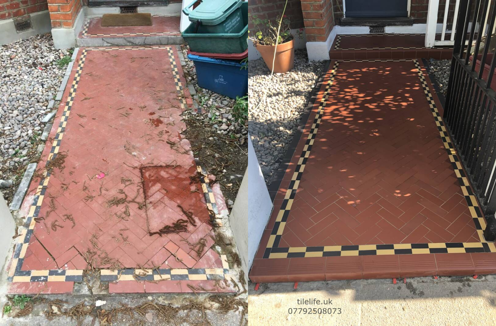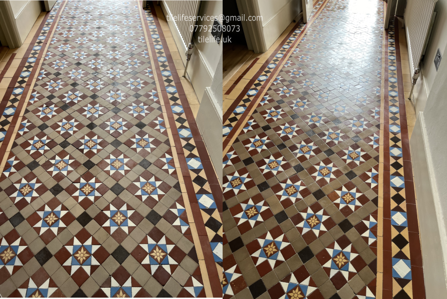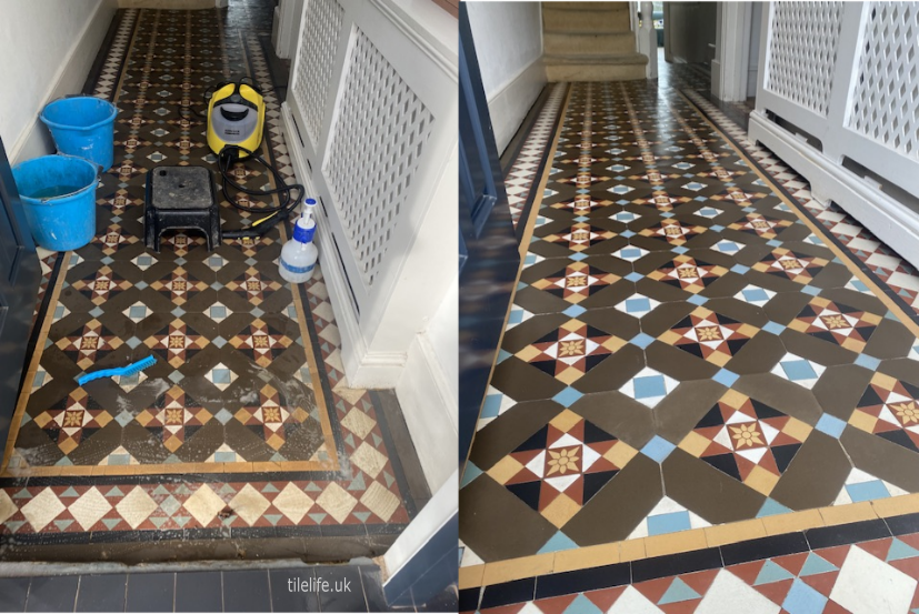 I spend a lot of time in Muswell Hill and Crouch end. It seams they are never going to run out of original Victorian tiled hallways that customers find under old carpets :). There are some nice colourful geometric style Victorian tessellated tiles in these areas , also nice Victorian tiles in Barnet, Potters bar. Basically I cover all of North and North West London so please do get in touch. I have included some info below on my restoration process for these old tiles